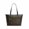 Refined pebble leather Inside zip cell phone and multifunction pockets Zip-top closure fabric lining Handles with 11 1/4 drop Outside open pocket Four protective feet at base 12 1/2 (L) x 10 1/2 (H) x 4 3/4 (W) Style No. C1566