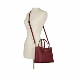 Double face crossgrain leather Zip-top closure fabric lining Side open compartments Handles with 4 3/4 drop Detachable strap with 22 drop for shoulder or crossbody wear 9 3/4 (L) x 7 1/2 (H) x 4 3/4 (W) Style No. C4084